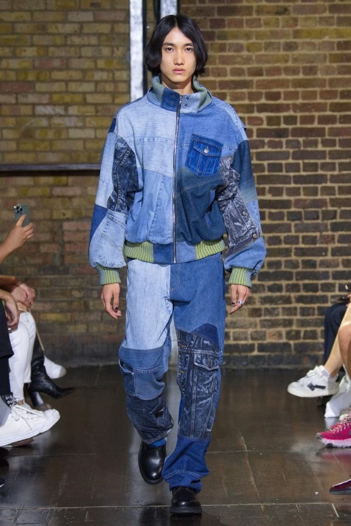 شوهدت على منصة أسبوع الموضة بلندن أزياء مصنوعة من الدنيم المزدوج بشكل بوهيمي، حيث سار العارضون على مدرج يرتدون ملابس المصمم على البدلة الرسمية الكندية، وتضمنت إطلالات الدنيم المزدوجة بلوزة برباط من الدنيم وبنطال جينز واسع الساق، وصدرية مستوحاة من ملابس العمل للرجال، وكلاهما مطبوع عليه شعار العلامة التجارية.