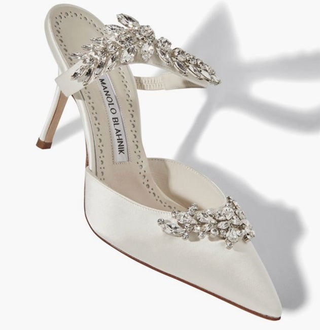 ويمكنكِ، أيضاً، خطف الأنظار بأسلوبكِ الكلاسيكي في حفل زفافكِ من خلال اختيار حذاء “Manolo Blahnik” الأكثر بريقاً وإبداعاً، إضافة إلى أن ارتفاعه مناسب لكافة الفتيات.