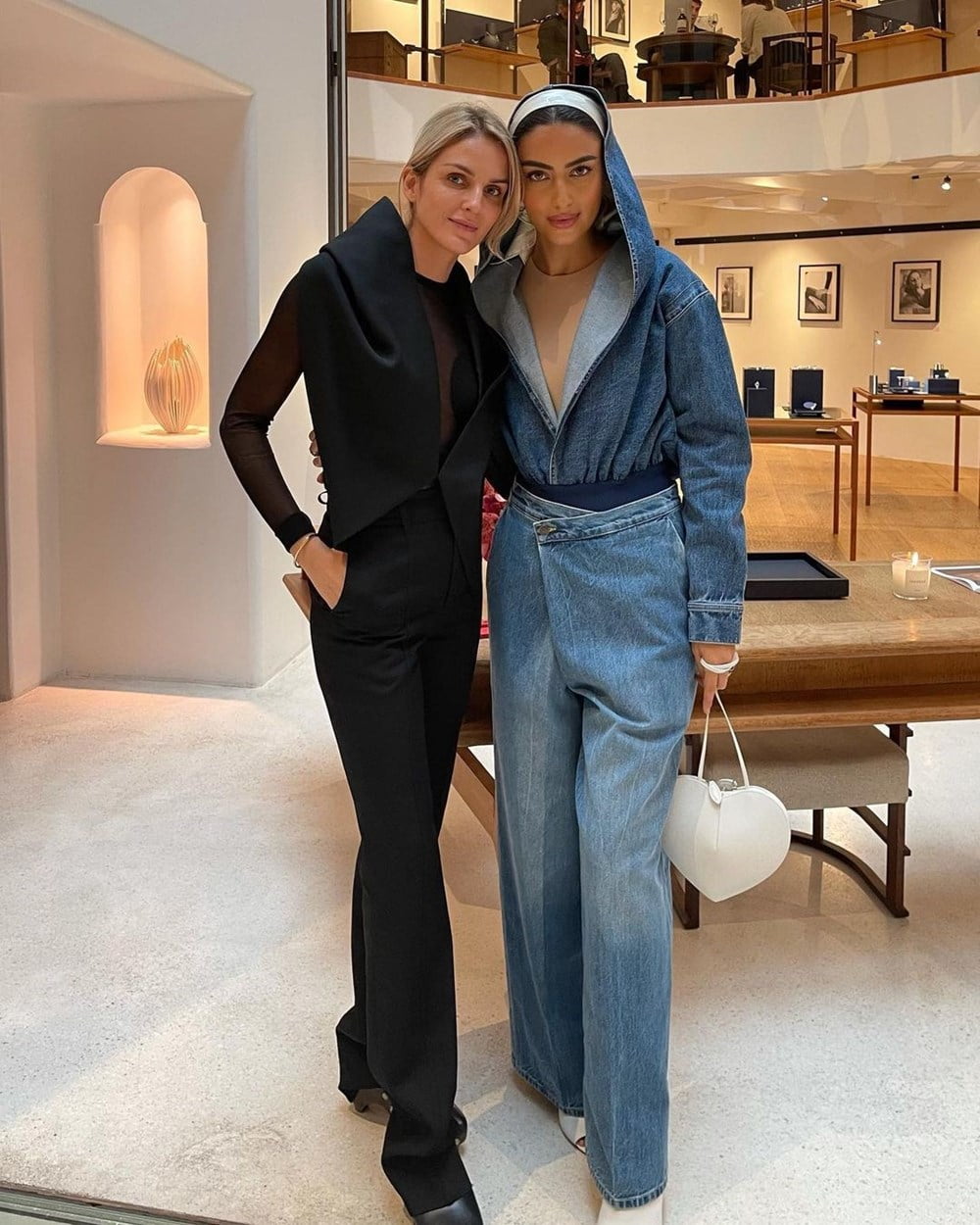 من أحدث إطلالات النملة، التي أثارت ضجة كبيرة على موقع “إنستغرام”، كانت تنسيقها لتوب وبنطال من الجينز، بإطلالة تشبه الجمبسوت الكامل، وجاءت الإطلالة بطابع التسعينيات، حيث نسقت توب مزوداً بقطعة معطف للرأس من علامة Maison Alaia، واختارت معه بنطالاً بتصميم مميز من نفس النوع بتوقيع دار The Row، أكملت إطلالتها العصرية بحقيبة وحذاء من اللون الأبيض.
