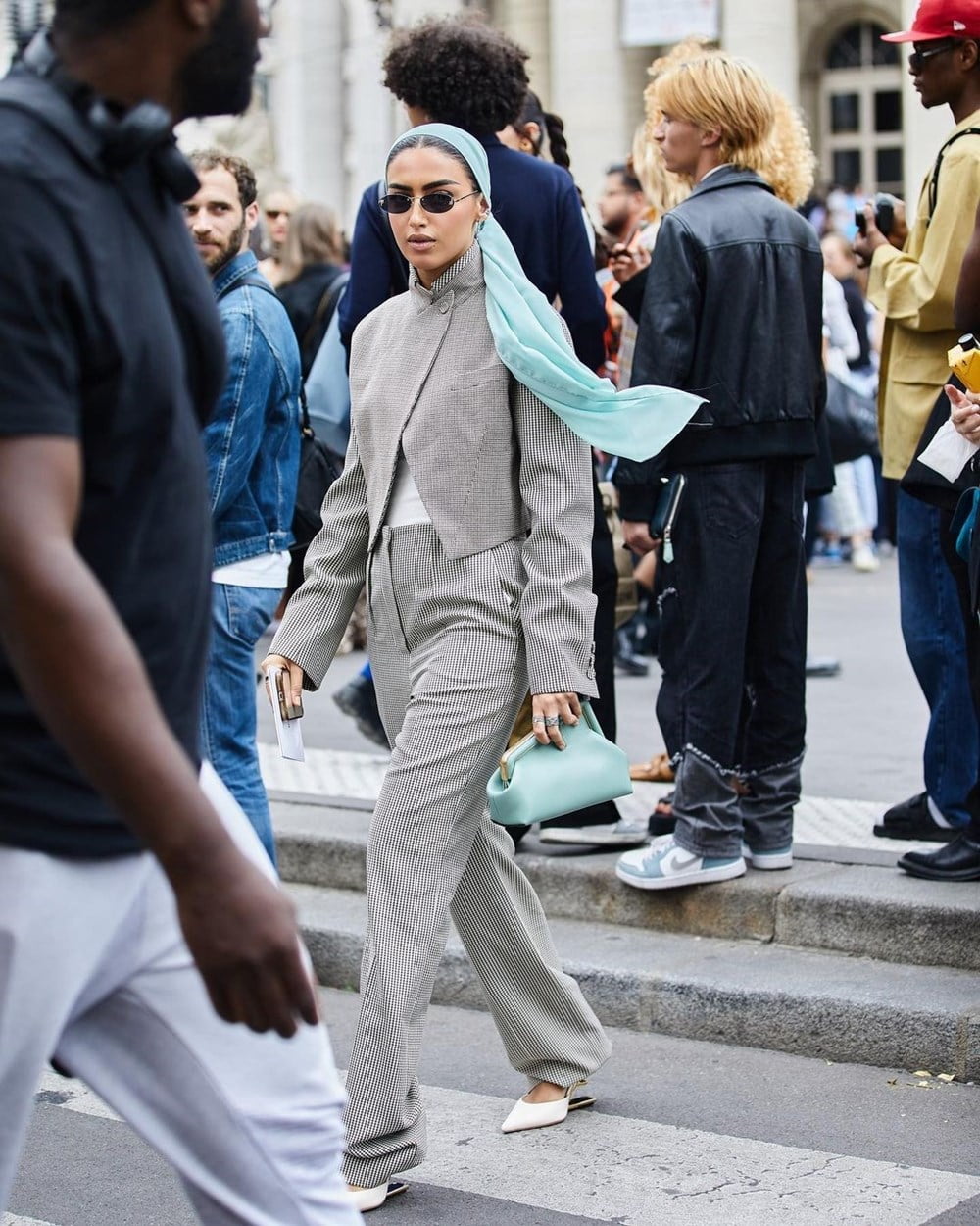 أثناء حضورها أسبوع باريس للهوت كوتور 2022-2023، تألقت خبيرة الجمال والموضة بمجموعة من الأزياء الرسمية العصرية، حيث اختارت بدلة كاملة من دار Fendi، باللون الرمادي الفاتح، ومُقلمة باللون الأبيض، واختارت معها حجاباً وحقيبة من “Fendi”، أيضاً، بالأخضر الفاتح “المينت”.