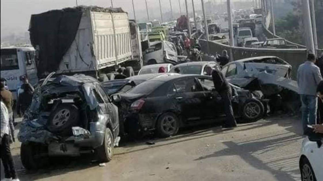 حادث تصادم مروع شهده الطريق الدائري بمصر، أسفر عن سحق سبع سيارات.