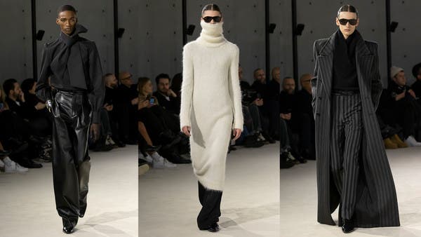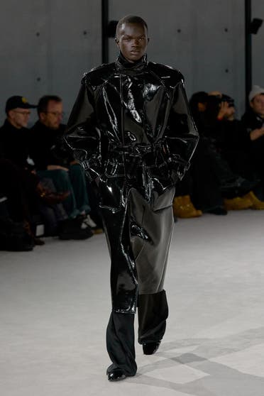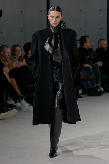 ورافقت جميع أزياء هذه المجموعة أحذية سوداء لماعة، أما الأكسسوارات الأخرى التي تم رصدها في هذا العرض فكانت النظارات الشمسية الداكنة والقفازات الجلدية التي عززت الطابع الدرامي لإطلالات ترافق بعضها مع أغطية للرأس.