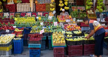 متجر لبيع الخضروات والفاكهة في مصرتوقع محللون في استطلاع أجرته وكالة رويترز أن ينخفض التضخم في مصر لشهر سادس في أغسطس مقارنة بالشهر نفسه من العام…