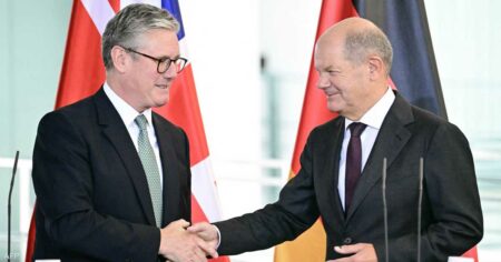جانب من اللقاءأعلن المستشار الألماني أولاف شولتس ورئيس الوزراء البريطاني الجديد كير ستارمر، الأربعاء، عن خطط لوضع معاهدة تهدف إلى تعميق العلاقات التجارية والدفاعية وغيرها من…