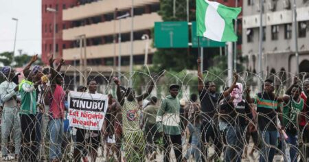 جانب من احتجاجات نيجيريادعا الرئيس النيجيري بولا تينوبو الأحد إلى إنهاء الاحتجاجات الحاشدة على الصعوبات الاقتصادية، قائلا إن المظاهرات تحولت إلى العنف وألقى باللوم في قيادتها…