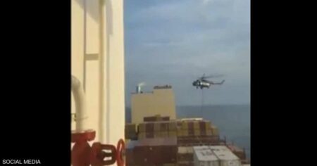 مروحية إيرانية تحلق فوق السفينة بمضيق هرمزأظهر فيديو تم تداوله على منصات التواصل الاجتماعي احتجاز مروحية إيرانية لسفينة ترفع العلم البرتغالي وتديرها شركة زودياك التي يملكها…