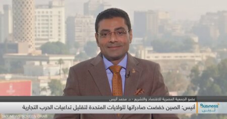 Business مع لبنىقال عضو الجمعية المصرية للاقتصاد والتشريع، د. محمد أنيس، إن الصين وضعت استراتيجية مواجهة اقتصادية مع الولايات المتحدة تقوم على مبدأ الندية، مشيراً إلى…
