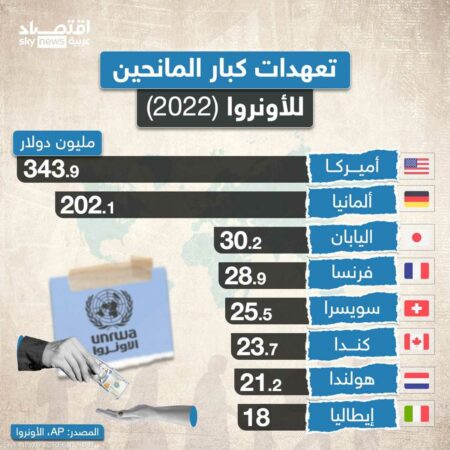 أميركا وألمانيا يتصدورن قائمة كبار المانحين لمنظمة الأونروا
