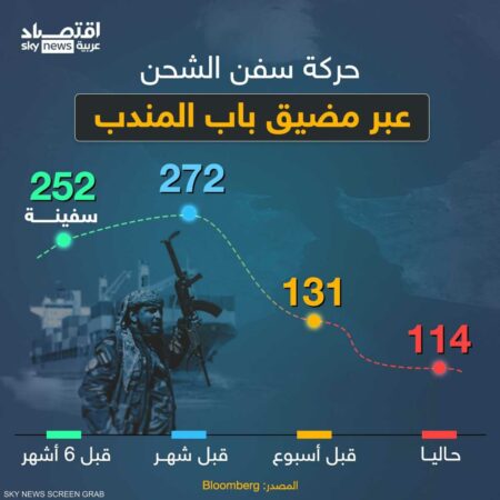 كيف تغيرت حركة سفن الشحن في مضيق باب المندب خلال 6 أشهر؟