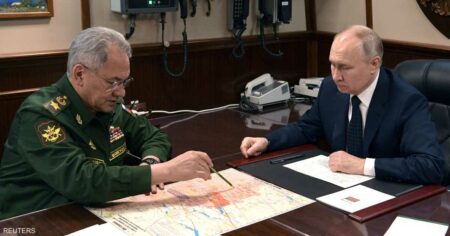 شويغو خلال لقاء مع بوتينسيطر الجيش الروسي على بلدة مارينكا قرب دونيتسك في شرق أوكرانيا، حسب ما أعلن وزير الدفاع سيرغي شويغو، الإثنين، ما يسمح لموسكو…