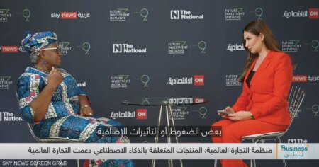 Business مع لبنىقالت المديرة العامة لمنظمة التجارة العالمية نغوزي أوكونغو إيويالا إن المنظمة خفضت توقعاتها لنمو التجارة العالمية إلى 0.5% في العام المقبل. 07:18 – 30…