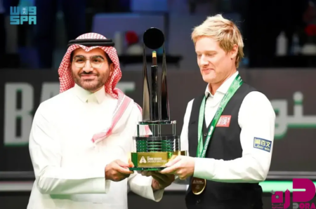 توَّج معالي نائب وزير الرياضة الأستاذ بدر بن عبدالرحمن القاضي، اللاعب الأسترالي نيل روبرتسون بلقب بطولة الماسترز للسنوكر، والتي استضافتها المملكة بجدة في الصالة الرياضية بمدينة…