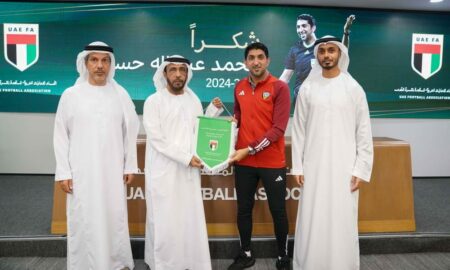 كرم الشيخ حمدان بن مبارك آل نهيان رئيس اتحاد كرة القدم، الدكتور أحمد بن علي النائب الأول للرئيس للاتصال المؤسسي في مجموعة إي آند (e&)، وعبد…