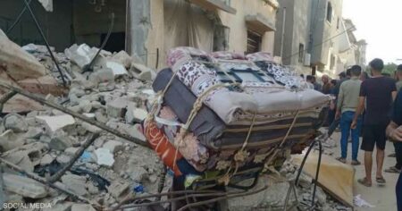وقال المتحدث باسم الدفاع المدني محمود بصل لوكالة “فرانس برس”: “نقلت طواقمنا جثامين 9 شهداء أطفال بعضهم جثث متفحمة من منزل الدكتور حمدي النجار وزوجته الدكتورة…